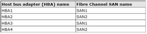 role installed. Server1 is connected to two Fibre Channel SANs and is configured as shown in the