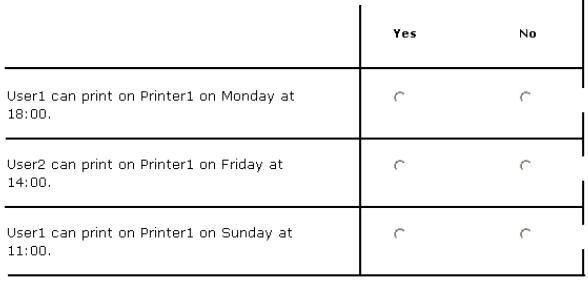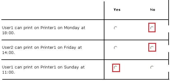 I think this is the case because there is another question that asks about whether users can “submit jobs” at such-and-such a time. The answer is always Yes, because they can submit jobs until the cows come home — but if the printer is paused, or if it’s outside the available time, those jobs won’t be printed.