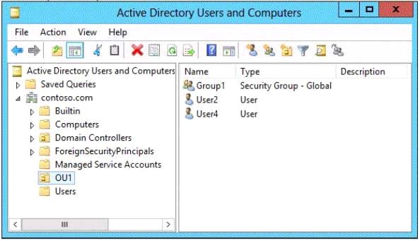The domain contains an organizational unit (OU) named OU1 as shown in the OU1 exhibit. (Click the