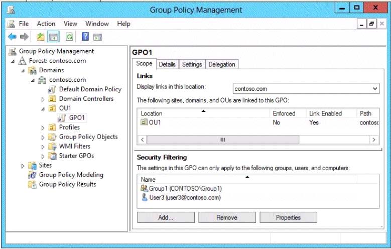 Consequently, the only users in the OU are User2 and User4. Since the Security Filtering specifies