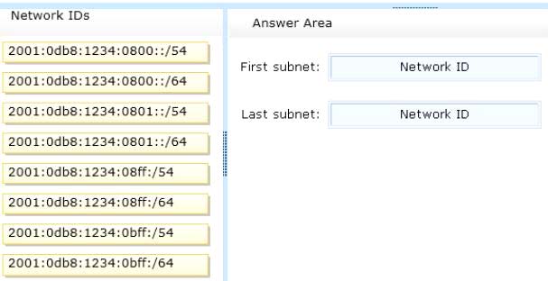 To answer, drag the appropriate network IDs to the correct subnets. Each network ID may be used