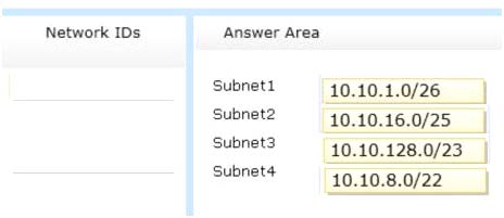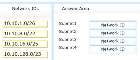 To answer, drag the appropriate network ID to the each subnet in the answer area.