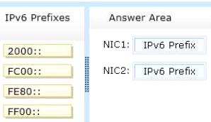 To answer, drag the appropriate IPv6 prefix to the correct network adapter in the answer area.