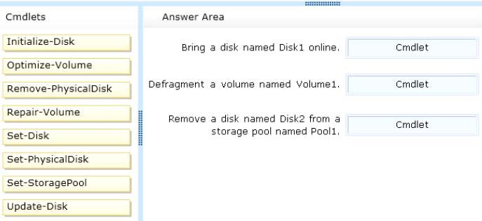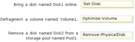 To answer, drag the appropriate cmdlets to the correct tasks. Each cmdlet may be used once, more