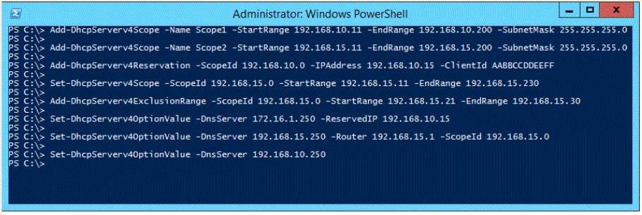 PS C:\> Set-DhcpServerv4OptionValue -ComputerName dhcpserver.contoso.com -ReservedIP 10.10.10.5 -DnsServer 192.168.1.2 -WinsServer 192.168.1.3 -DnsDomain contoso.com -Router 192.168.1.1 -Wpad http://proxy.contoso.com/wpad.dat