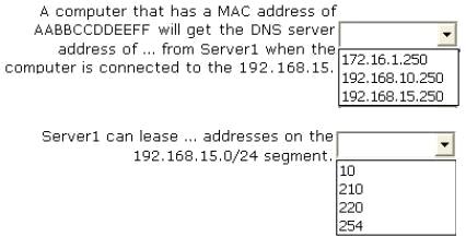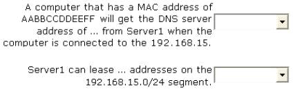 The question is what would IP address the client that has MAC AABBCCDDEEFF will get when this client is connected to a network segment that requests an IP address from Scope “192.168.15”?