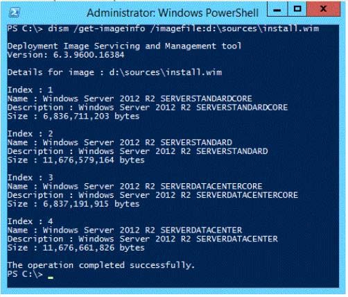 You have a WIM file that contains the four images of Windows Server 2012 R2 as shown in the