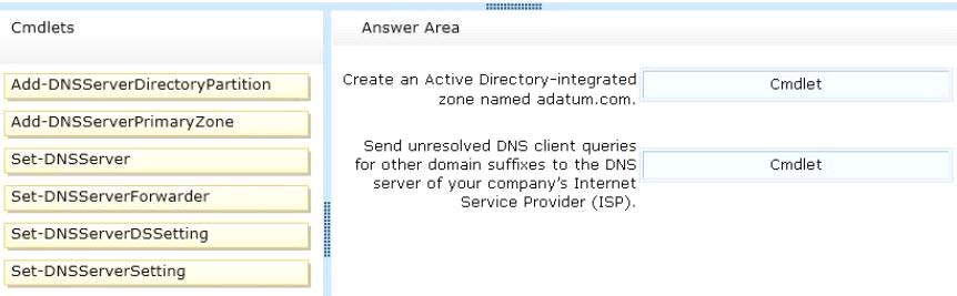 To answer, drag the appropriate cmdlet to the correct configuration in the answer area. Each cmdlet