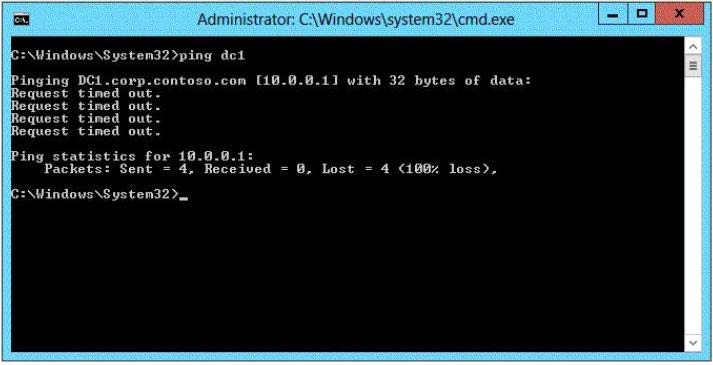 When you run ping dc1.corp.contoso.com, you receive the result as shown in the exhibit. (Click the