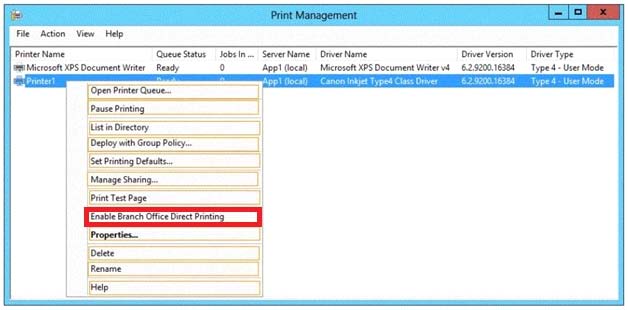 Enabling Branch Office Direct Printing is a new feature in Windows Server 2012 R2 that helps branchoffice sites reduce their wide area network (WAN) usage by printing directly to a print device instead