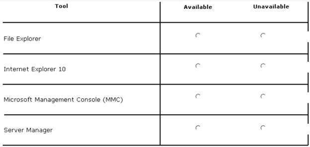 In the table below, identify which tools are available on Server1 and which tools are unavailable on