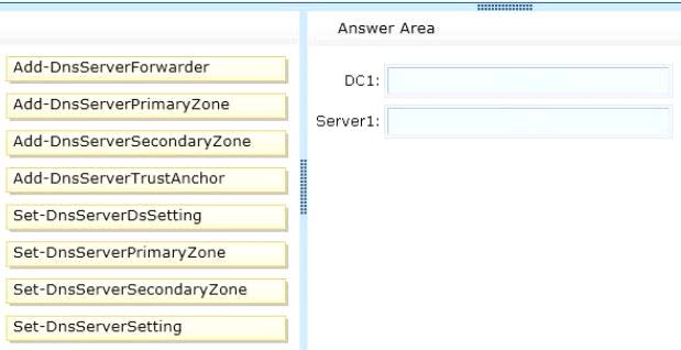 domain controller named DC1 that has the DNS Server server role installed. DC1 hosts an Active