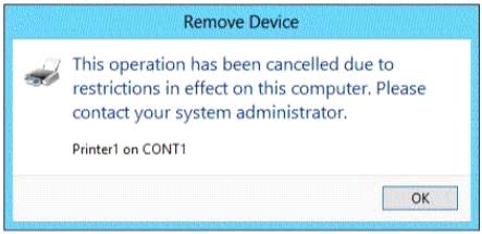 When you attempt to remove Printer1 from CONT2, you receive the error message shown in the