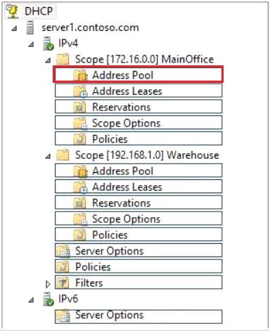 From which node should you configure the exclusion range? To answer, select the appropriate node