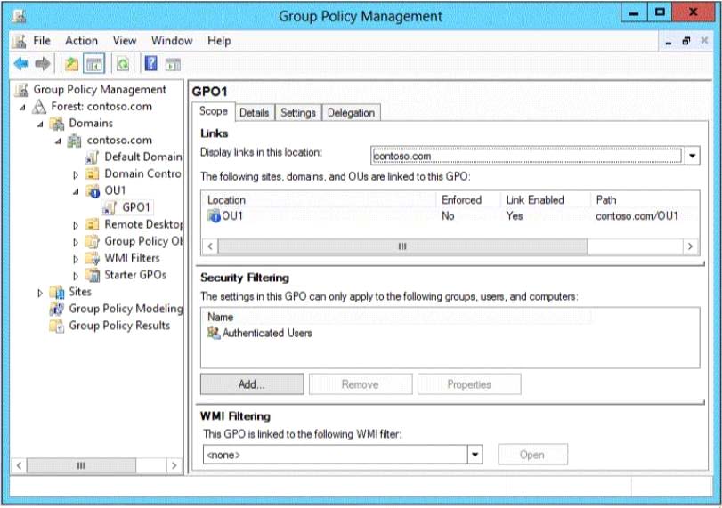 You open Group Policy Management as shown in the exhibit. (Click the Exhibit button.)