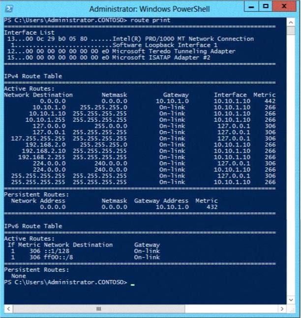 You run the route print command as shown in the exhibit. (Click the Exhibit button.)