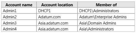 You have access to the administrative accounts shown in the following table.