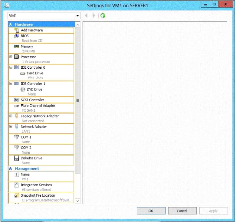 On Server1, you have a virtual machine named VM1.