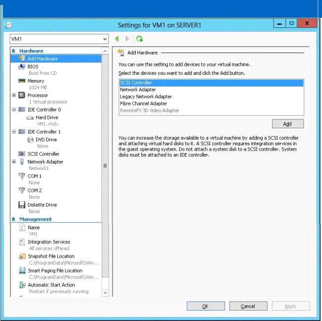 When you try to add a RemoteFX 3D Video Adapter to VM1, you discover that the option is