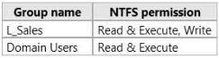 The members of L_Sales discover that they cannot add files to Share1. Domain users can run