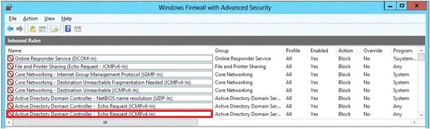 Which firewall rule should you modify on DC5? To answer, select the appropriate rule in the answer