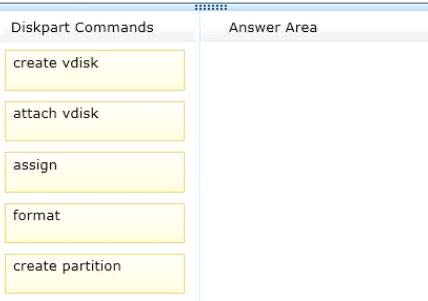 To answer, move all the Diskpart commands from the list of commands to the answer area and