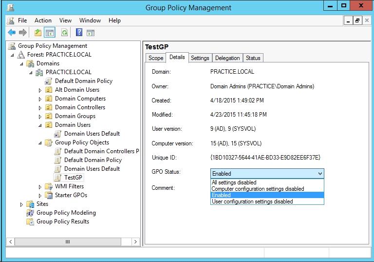 you can use the status to completely neglect user/computer settings. in this case we can use status to neglect the user seetting and apply just the computer settings