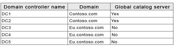 Your network contains an Active Directory forest that contains two domains. The forest contains five