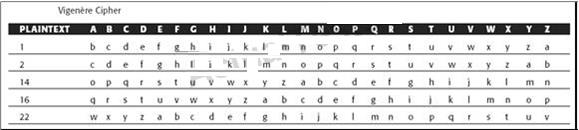 A portion of a VigenËre cipher square is given below using five (1, 2, 14, 16, 22) of the possible 26