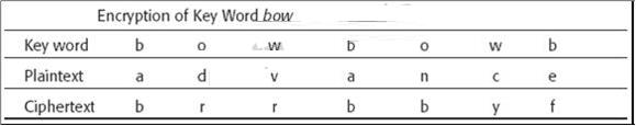alphabets. Using the key word bow, which of the following is the encryption of the word advance