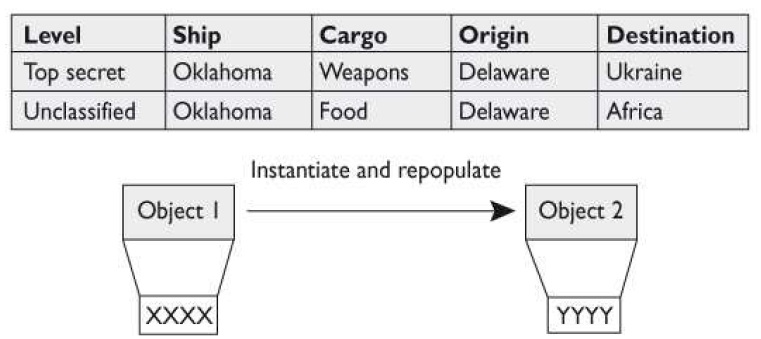contents. The multiple instances are commonly distinguished by their security levels. Polyinstantiation is when more than one copy of an object is made, and the other copy is modified
