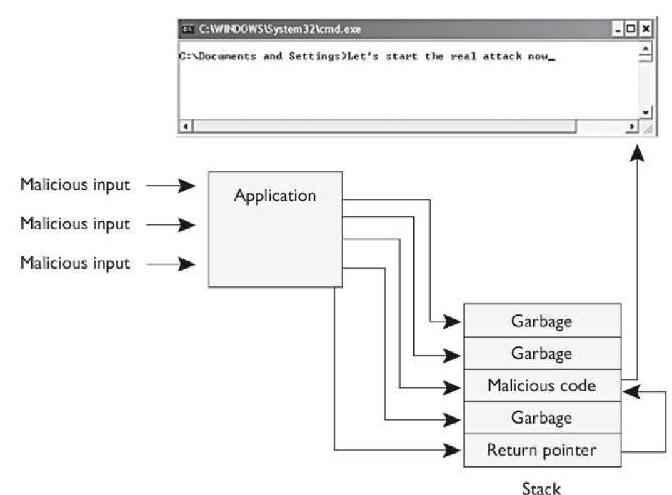 overwriting the instruction pointer in the code that told the program what to do with the input. Once the instruction pointer is overwritten, whatever code has been placed in the buffer
