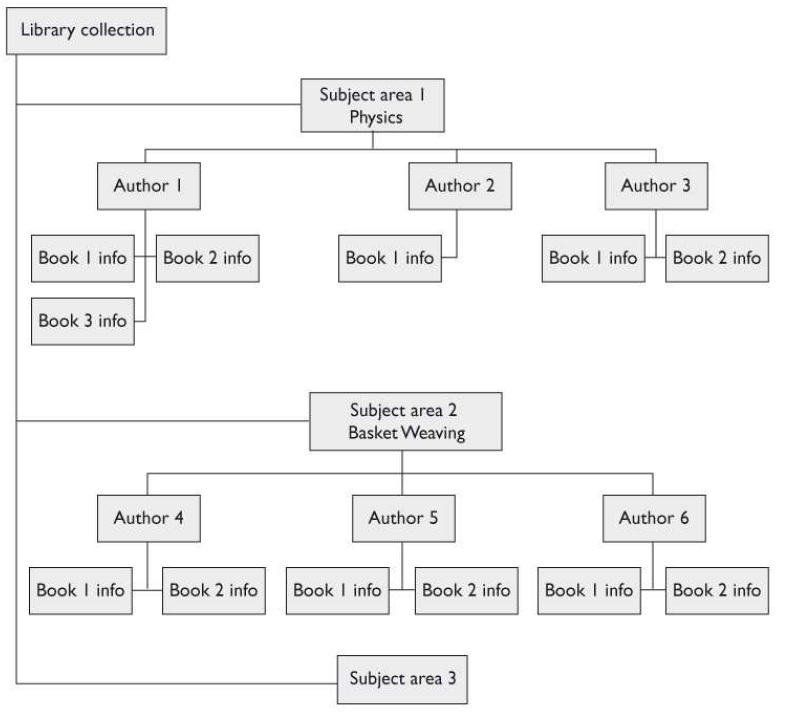 elements are different from those in a relational database. The tree structure contains branches, and each branch has a number of leaves, or data fields. These databases have welldefined,