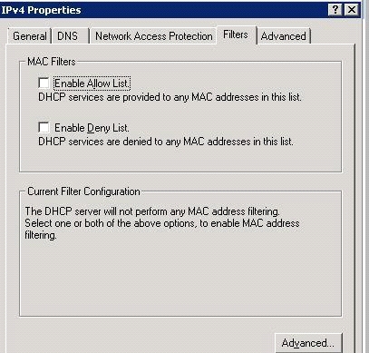 On DHCP>iPv4, click on properties, then click on filters tab :
