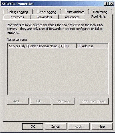 Root hints for Server1 are configured as shown in the exhibit. (Click the Exhibit button.)