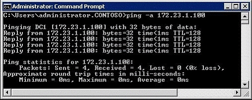 name resolution. From a client computer, you run the Ping tool as shown in the exhibit. (Click the