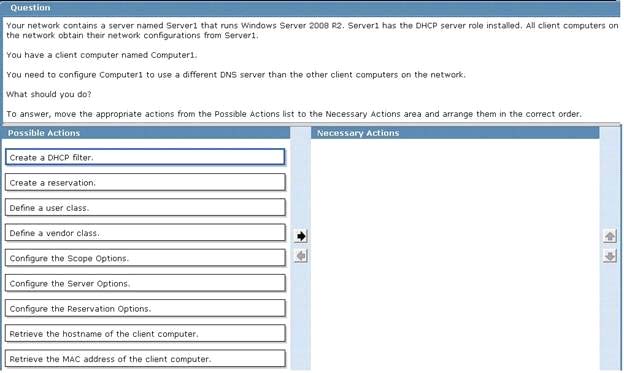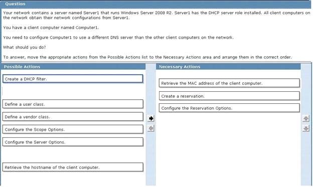 You need to configure Computer1 to use a different DNS server than other client computers on network DRAG DROPYou need to configure Computer1 to use a different DNS server than other client computers on network. DRAG DROPYou need to configure Computer1 to use a different DNS server than other client computers on network. Answer: Explanation:(I BEFORE B) AND (B BEFORE G) Show Hint ← Previous question Next question →