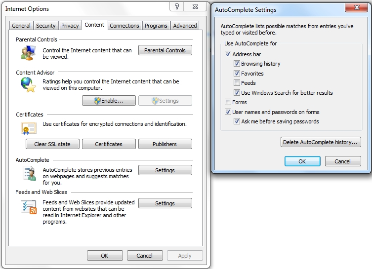 Modify the Windows Internet Explorer AutoCompletesettings.