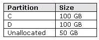 The computer contains one hard disk. The hard disk is configured as shown in the following table: