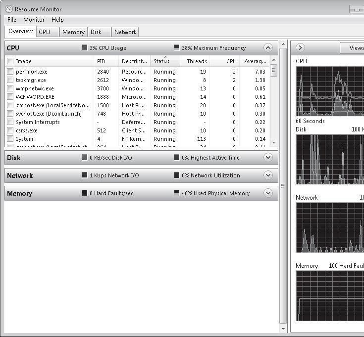 Windows 7 offers an enhanced version of the Resource Monitor tool. Windows 7 Resource Monitor allows you