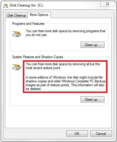 Run Disk Cleanup for System Restore and Shadow Copies.