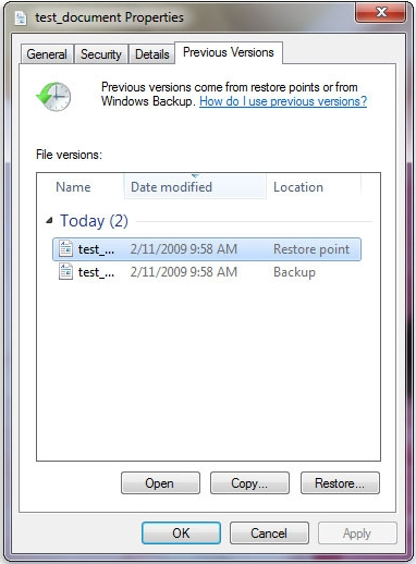 click Restore previous versions. For more information about libraries, see Include folders in a library.