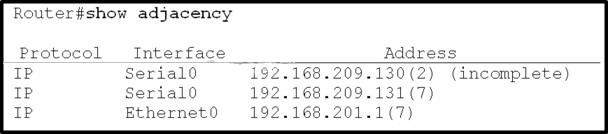 A network administrator checks this adjacency table on a router. What is a possible cause for the