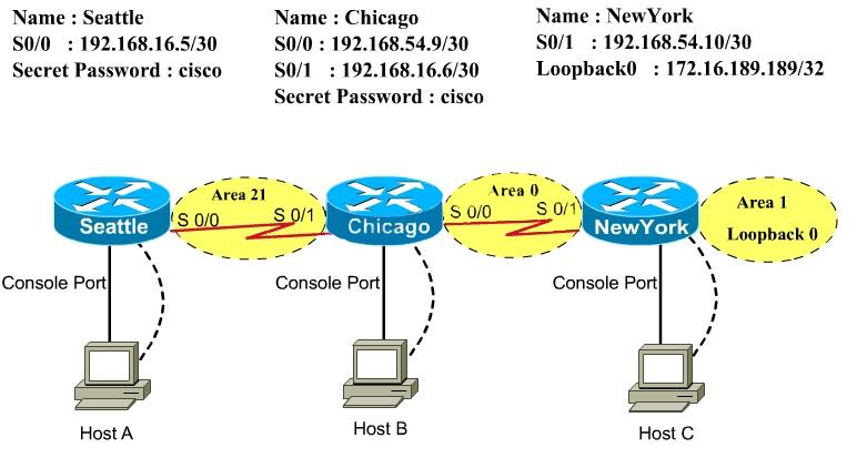 Note: In actual exam, the IP addressing, OSPF areas and process ID, and router hostnames may