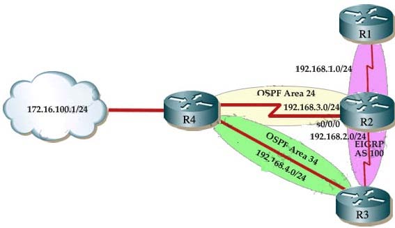 R2 is an ASBR for EIGRP 100 and OSPF AREA 24