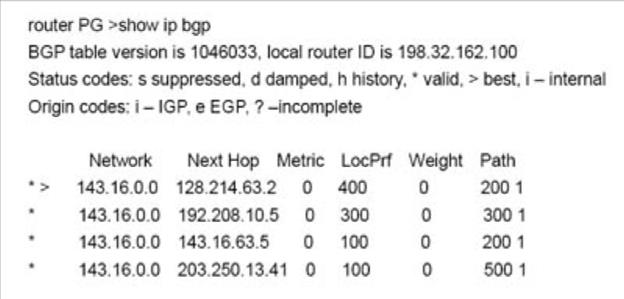 While verifying BGP operation on the ABC Company router, you issue the “show ip bgp”