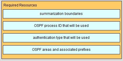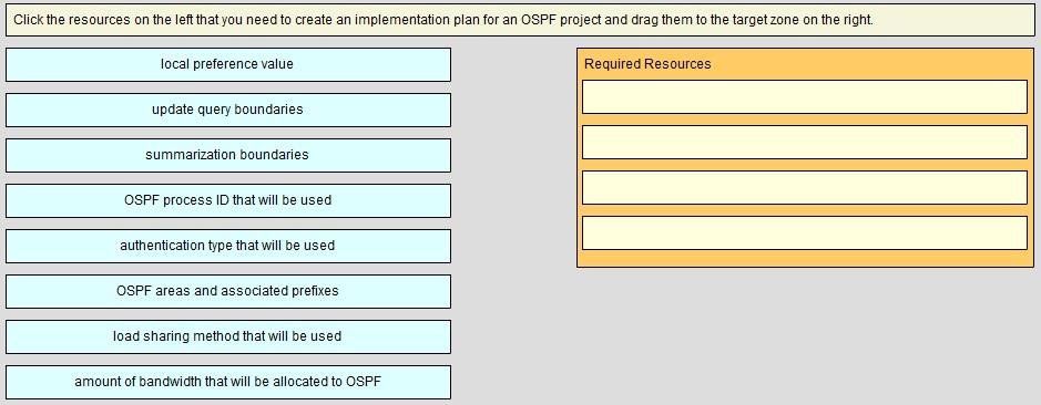 Click the resources on the left that you need to create an implementation plan for an OSPF project and drag them to the target zone on the right.