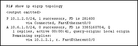 • A— Active; EIGRP computations are “actively” being performed for this destination.