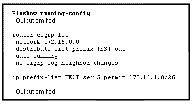 Router R1 will deny the 172.16.1.0/27 route while permitting the 172.16.1.0/26 route to be