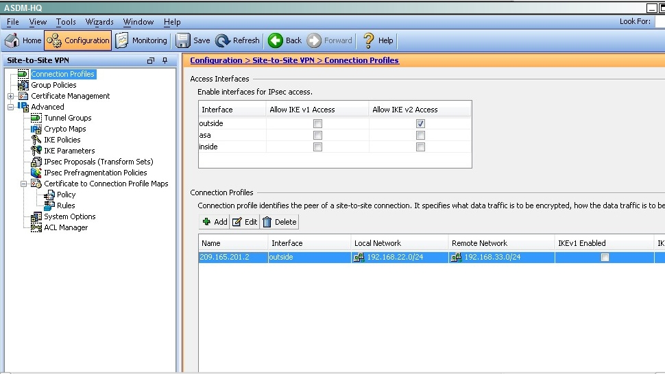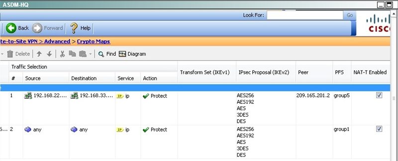 Trafficinitiated by the HQ ASA is assigned to the static outside crypto map, which shown below